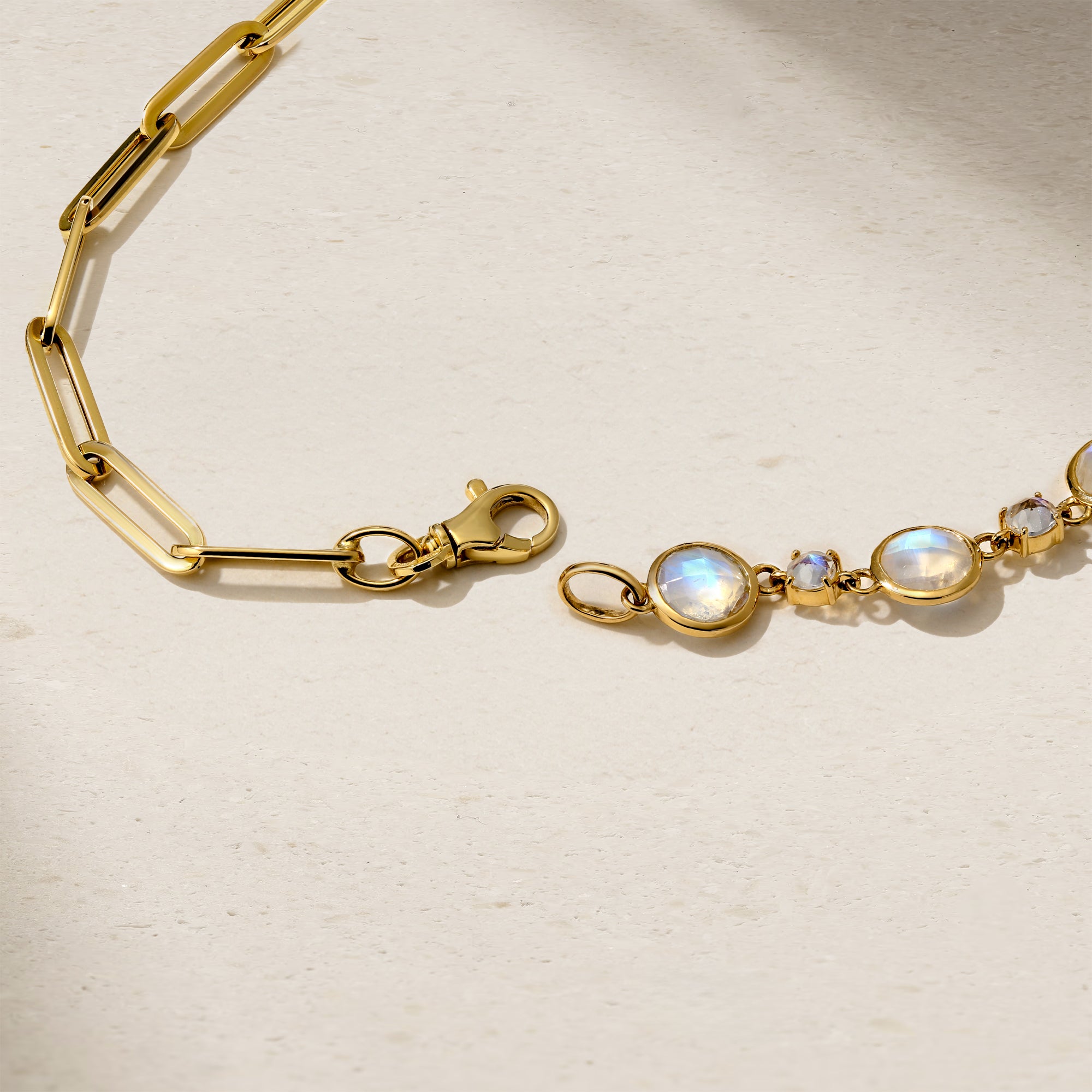 Half and Half Moonstone and Chunky Paperclip Link Necklace