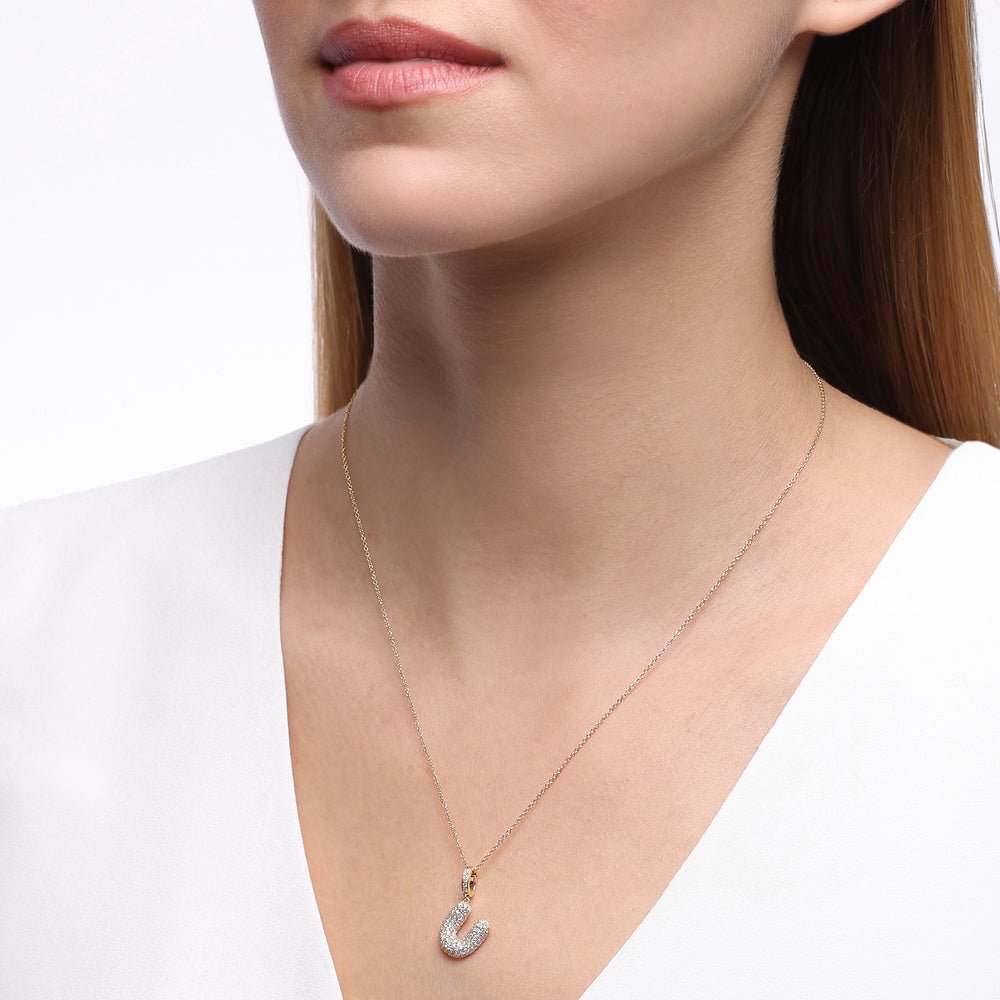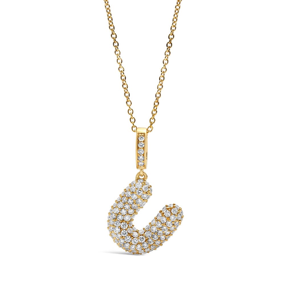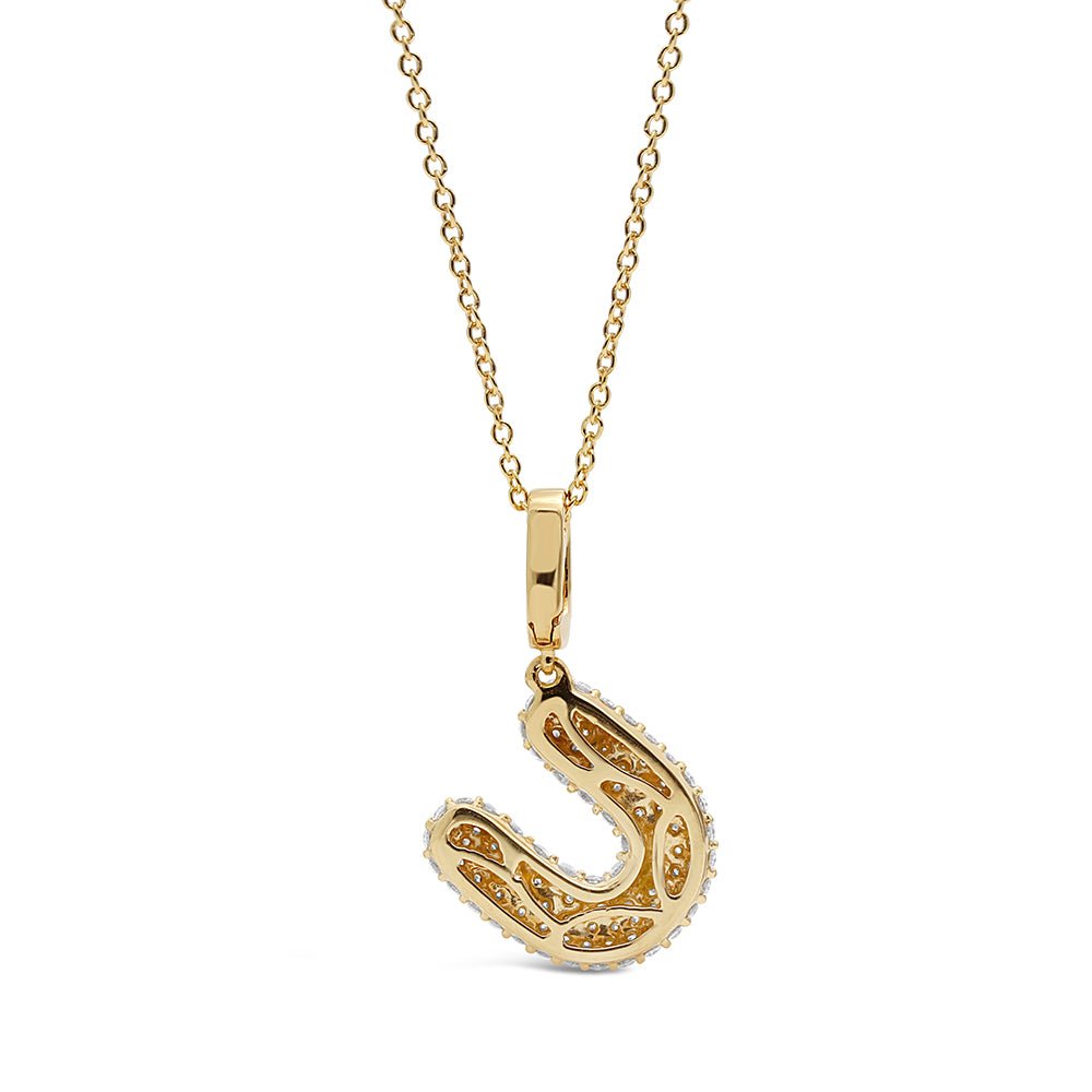Our whimsical take on a jewelry essential, this initial charm is illuminated by twinkling petite diamonds that are set along the soft contours of the letter "U", sculpted in a unique bubbly uppercase font. It suspends from a delicate 18" cable chain and makes for a perfect gift for yourself or any loved one. Wear yours solo or layer it together with some of your other favorites for a hint of personalized style.